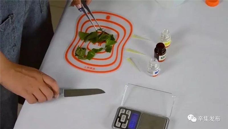 檢測過程也十分簡便:只要稱取2.0g樣品(約1cm見方)放入樣品杯中,加入顯色劑,靜置10分鐘后即可觀察到結果。